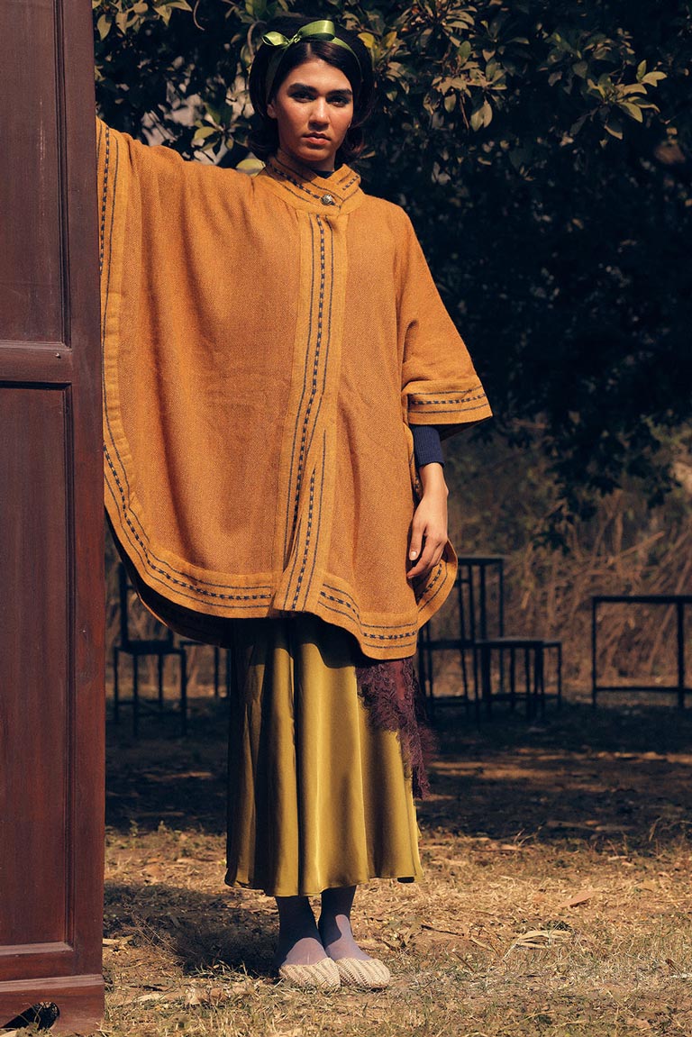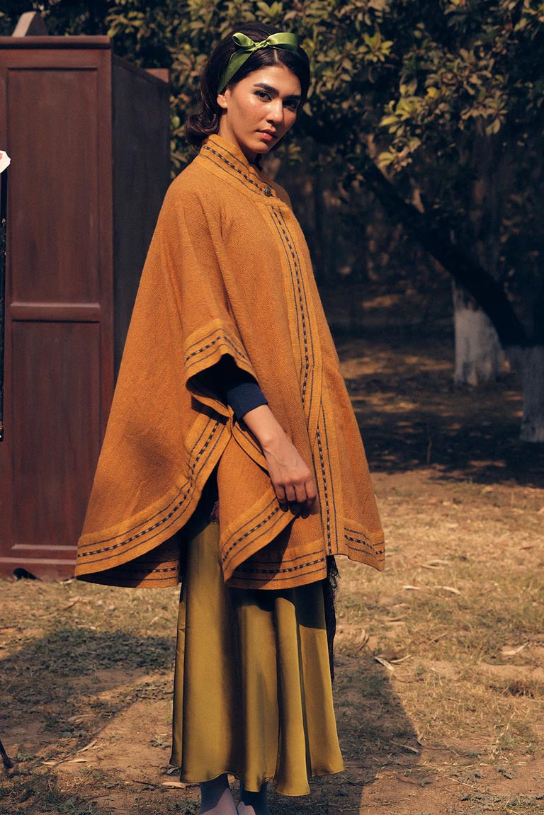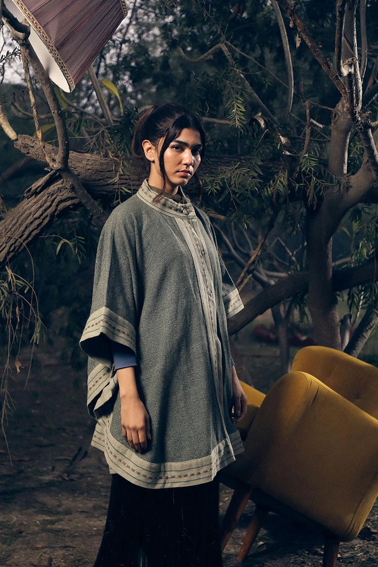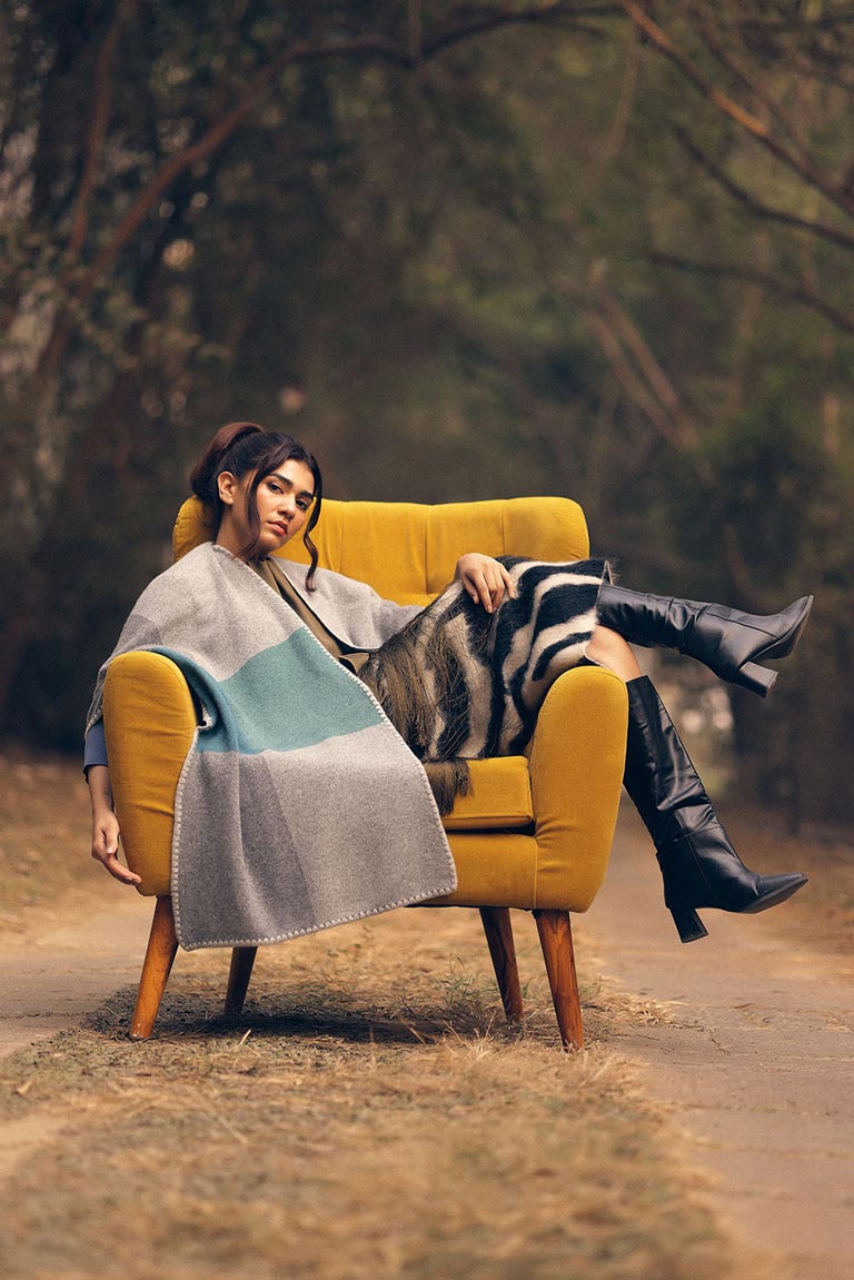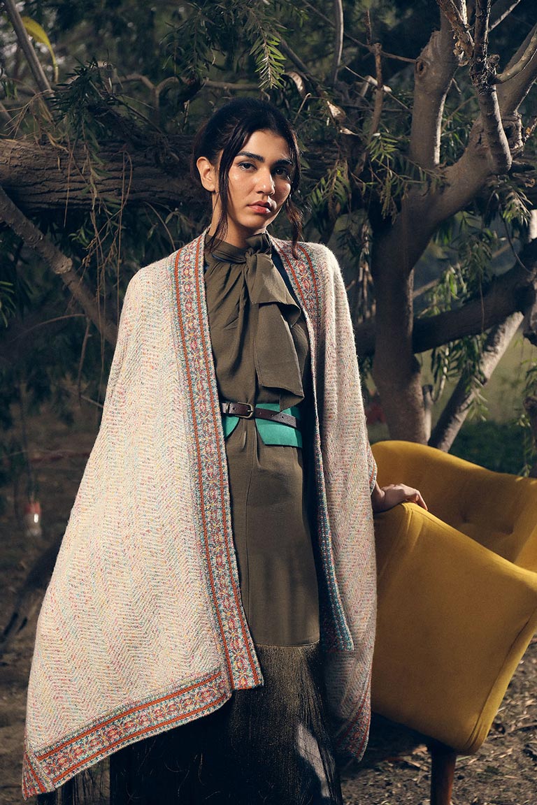 The cape is a canvas of quiet power — flowing, versatile, and effortlessly elegant. It moves with grace, offering warmth without weight, and presence without pretence. A timeless companion for the woman who carries the calm of the mountains within her.