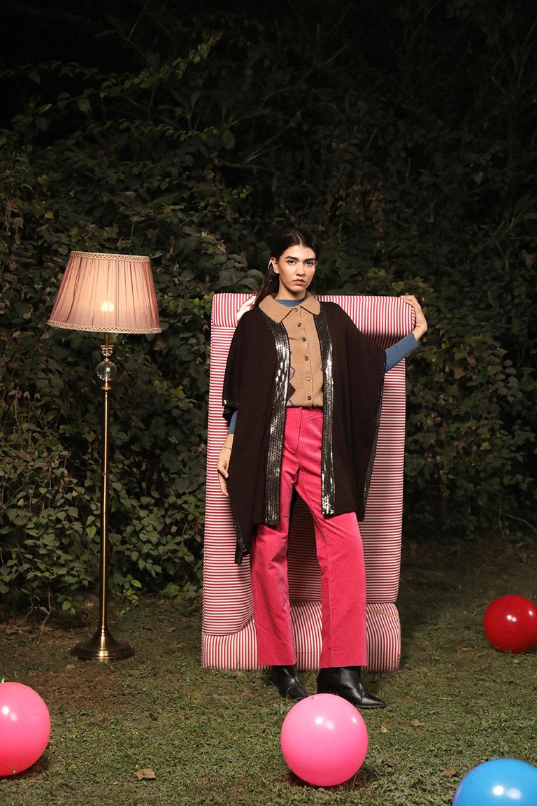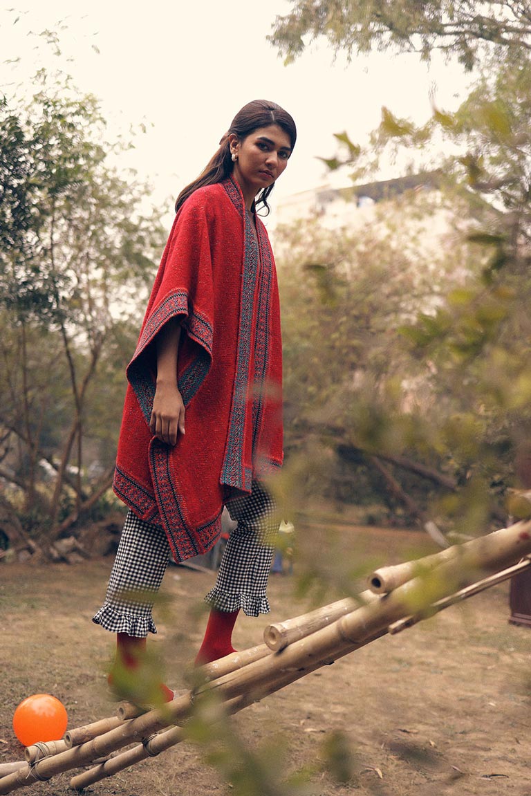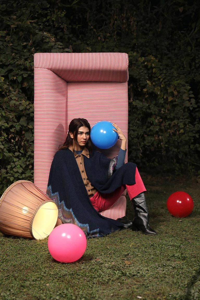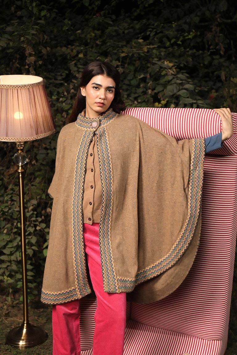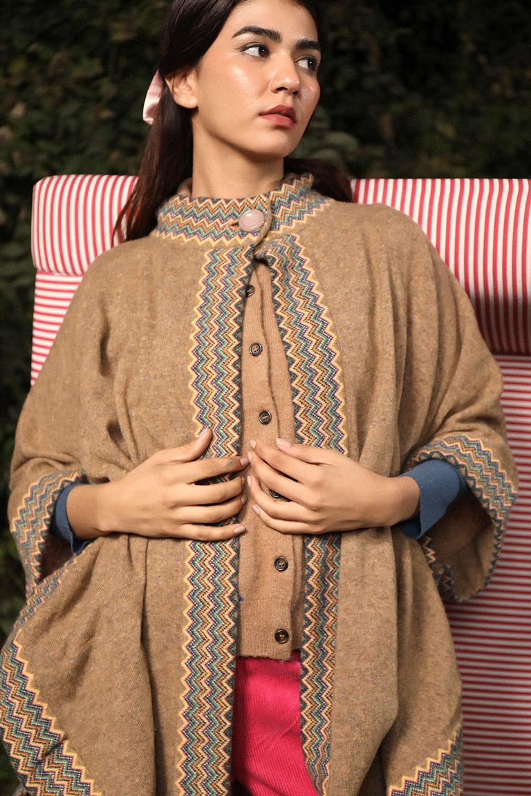 The cape is a canvas of quiet power — flowing, versatile, and effortlessly elegant. It moves with grace, offering warmth without weight, and presence without pretence. A timeless companion for the woman who carries the calm of the mountains within her.