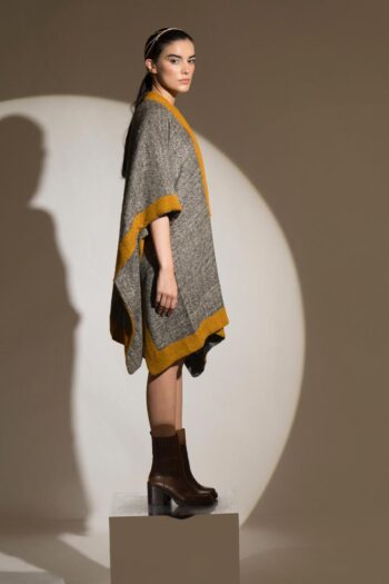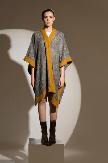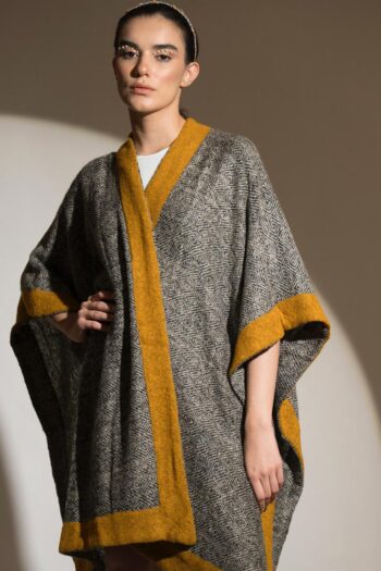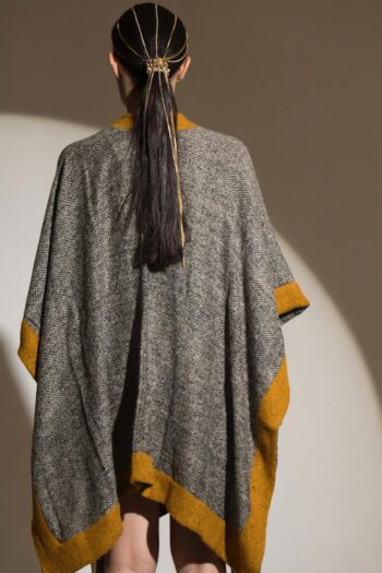 Woven in the forever eternal chasme bulbul weave with a striking mustard contrast band, this exotic cape promises to be one-in-a-kind.