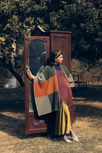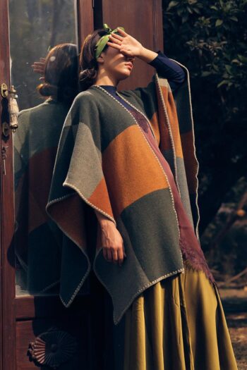 Rust and olive blocks echo the vibrancy of autumn foliage with a subdued rustic charm. The harmonious blend of warm and cool tones makes it a statement of timeless, seasonal refinement.