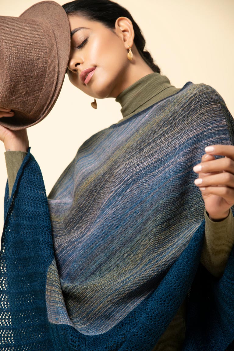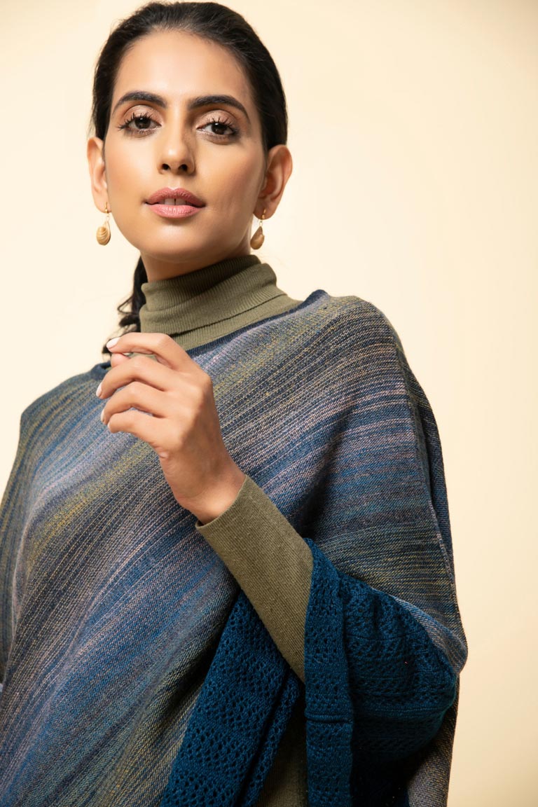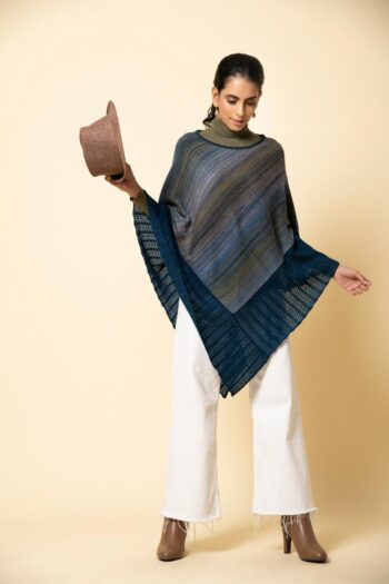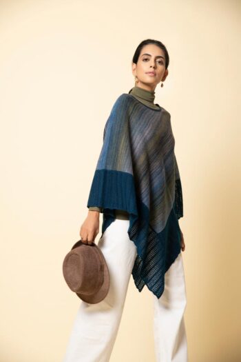 Slip into our soft pure wool poncho with a fisherman’s rib stitch border. This ombre shaded cape has a beautiful blend of colours that make it unique.
