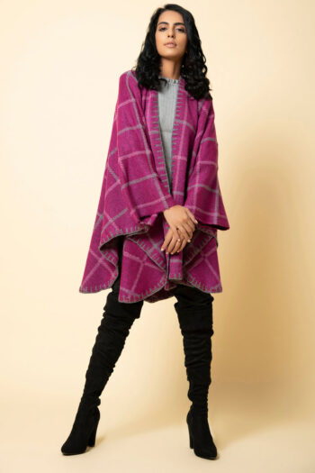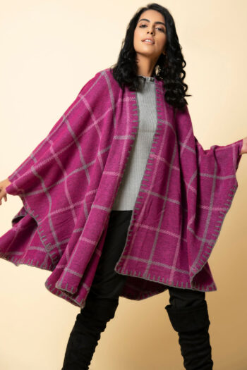 Slip on this delectable pink lambswool cape and hear the soft murmurs of admiration around you. Feel extra special in one of the most stunning pieces of our collection.