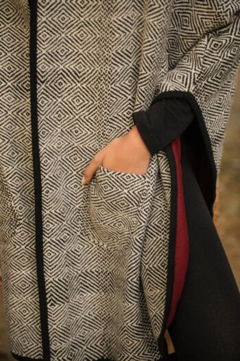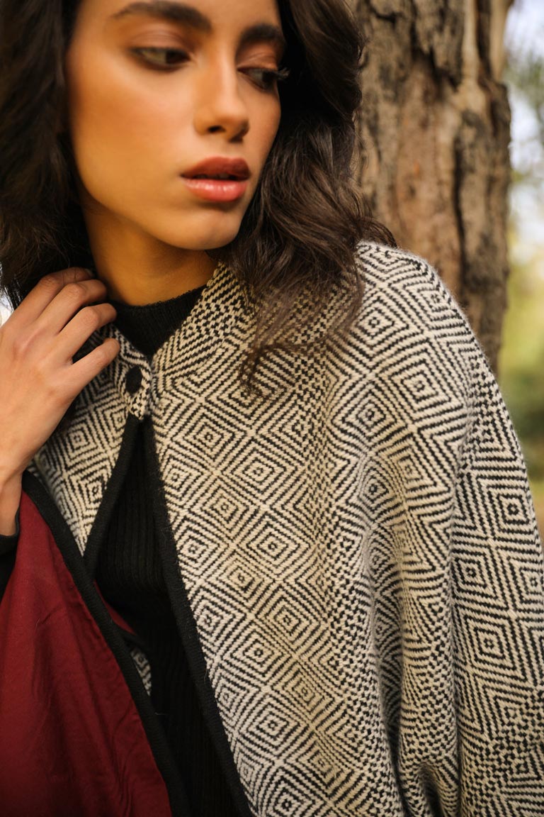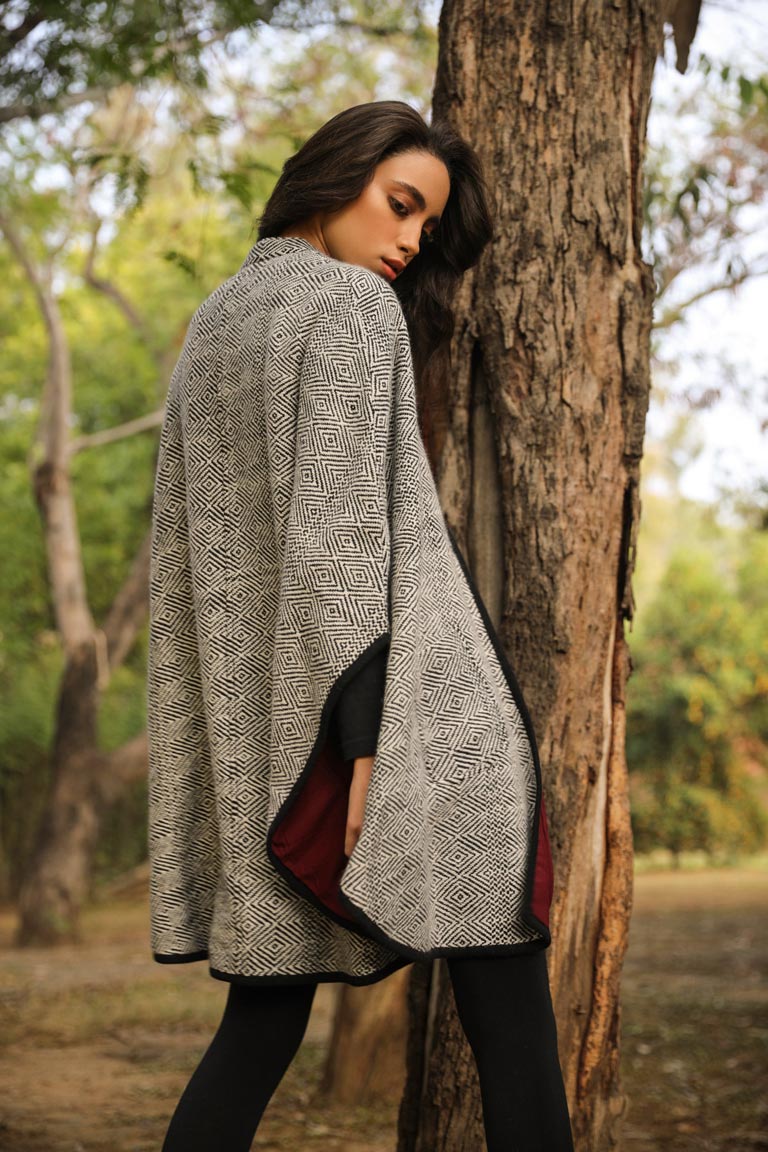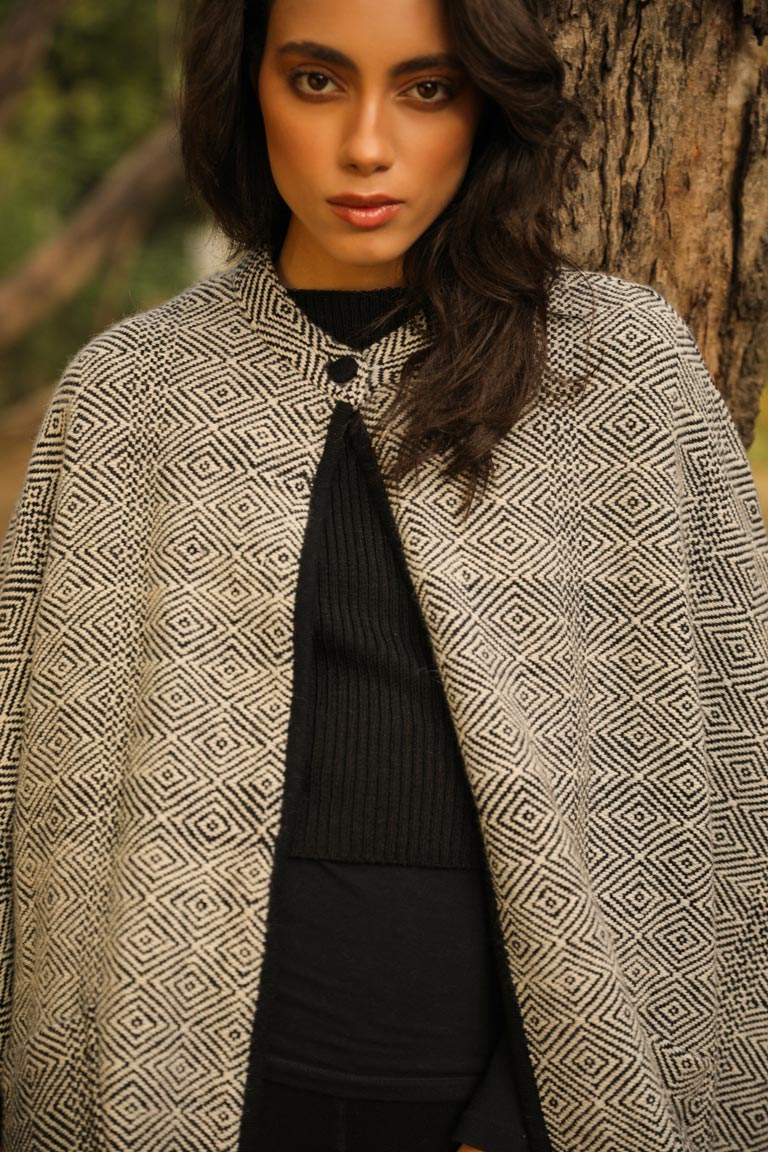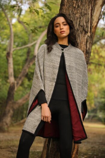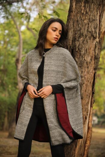 This painstakingly handwoven cape comes with a deep red underbelly just like the rose-breasted grosbeak it is named after. This collared cape has an intricate weave and is made of pure merino wool. The quality and the contrast inner is a striking feature which makes it one of our masterpieces.